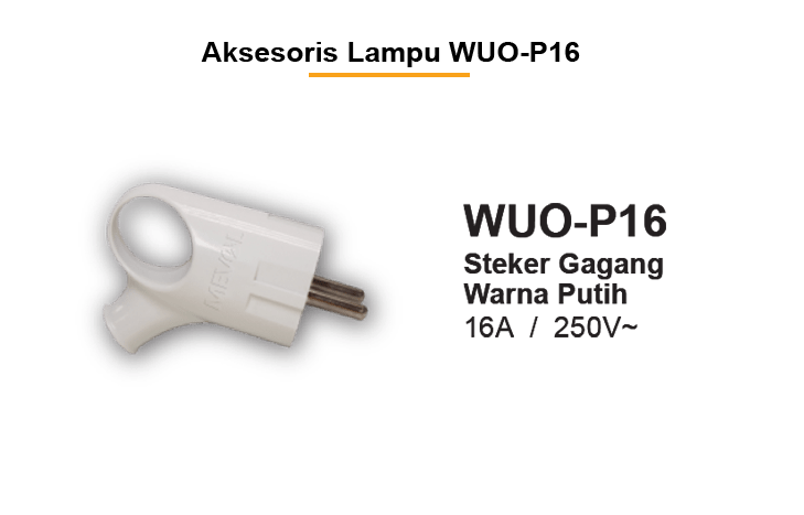 Meval Aksesoris Lampu WUO-P16, adalah aksesoris berupa steker arde yang dilengkapi dengan pegangan yang berfungsi: