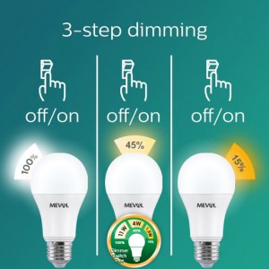 Ketiga, lampu 3 step dimming atau lampu led dimmer, lampu led dimmer memiliki Tingkat pencahayaan yang dapat dirubah sesuai dengan kebutuhan, kelebihan yang lainnya lampu ini memiliki 3 kapasitas watt yang berbeda dalam 1 lampu (11 watt ke 4 watt lalu ke 1,5 watt). Intensitas cahaya yang dihasilkan pada led dapat dirubah dari 100% sampai ke 40% lalu menjadi 10%, dan uniknya pengaturan hanya menggunakan tombol saklar biasa. Biasanya lampu ini digunakan pada ruangan santai atau ruangan baca agar bisa diatur tingkat cahaya yang diinginkan.