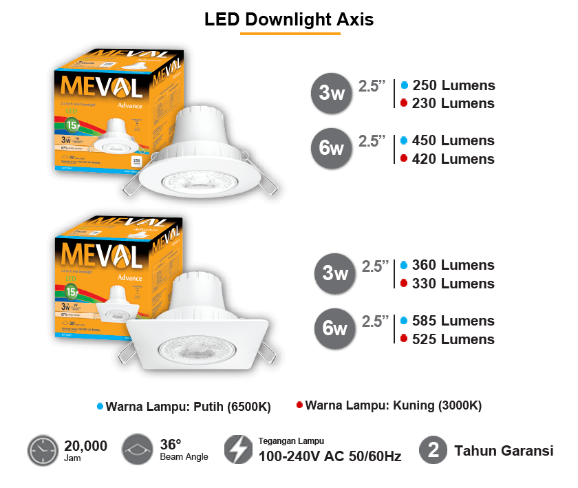 MEVAL LED Downlight Axis, LED Downlight dengan model kotak (square) dan bulat (round) dengan berbagai keunggulan seperti :